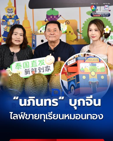 据泰国媒体报道,5月15日,泰国商务部副部长纳品通率代表团访问中国上海,亲自走访当地水果批发市场与高端零售超市,推广泰国优质水果。不仅如此,纳品通更是空降带货直播间,现场向中国消费者介绍泰国榴莲及其他热带水果。
